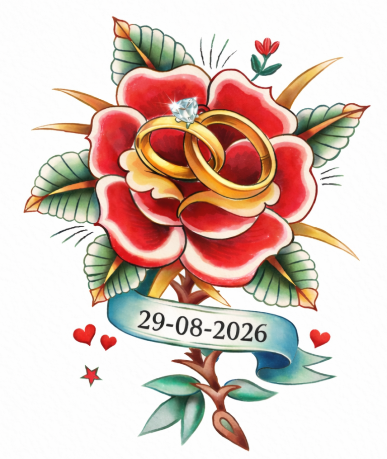 Onze bruiloft zal plaatsvinden op 29 augustus 2026.